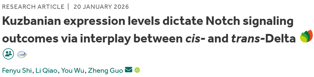 近日,基础医学院郭峥教授团队在发育生物学知名期刊《Development》上发表了题为“Kuzbanian expression levels dictate Notch signaling outcomes via interplay between cis- and trans-Delta”的研究论文。华中科技大学基础医学院医学遗传学系博士生施奋瑜为第一作者,郭峥教授为通讯作者。