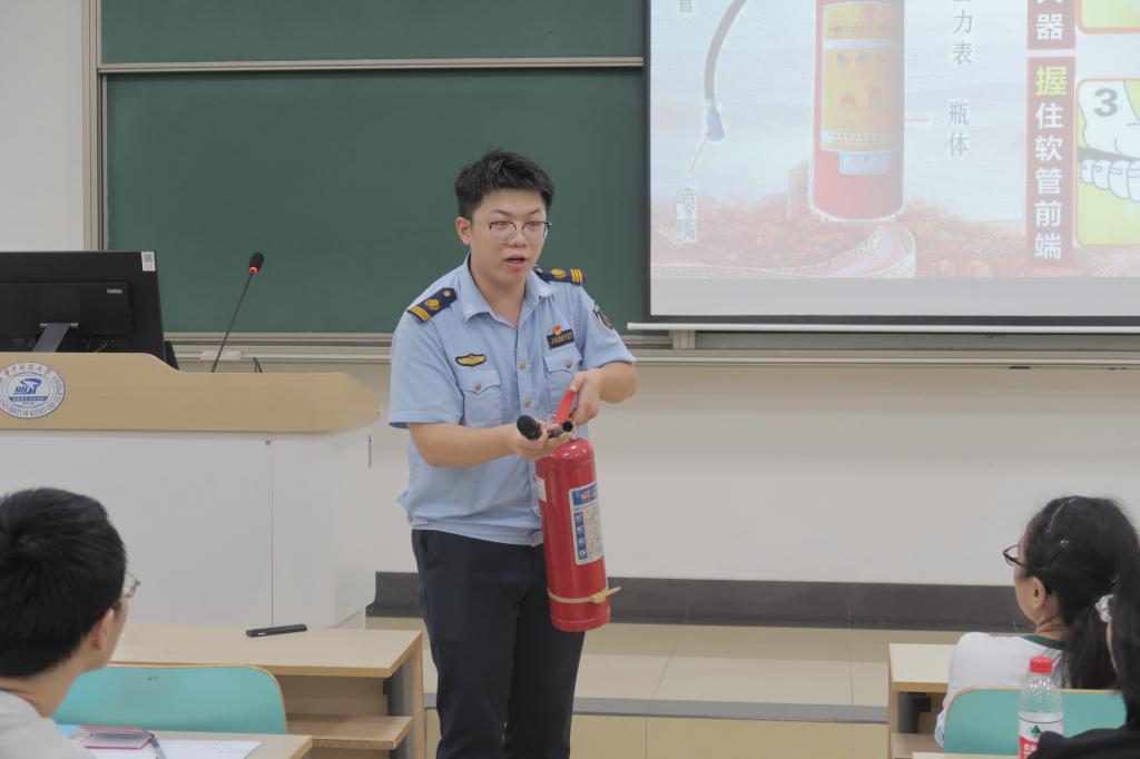武汉市进安消防中心的谢锴丰教官则通过火灾情景模拟,将消防安全主题生动地呈现在同学们面前。他利用大量视频资料和实际案例,结合现场问答的互动形式,为同学们带来了一场别开生面、寓教于乐的消防安全教育课,极大地提高了同学们的消防安全意识和自救能力。
