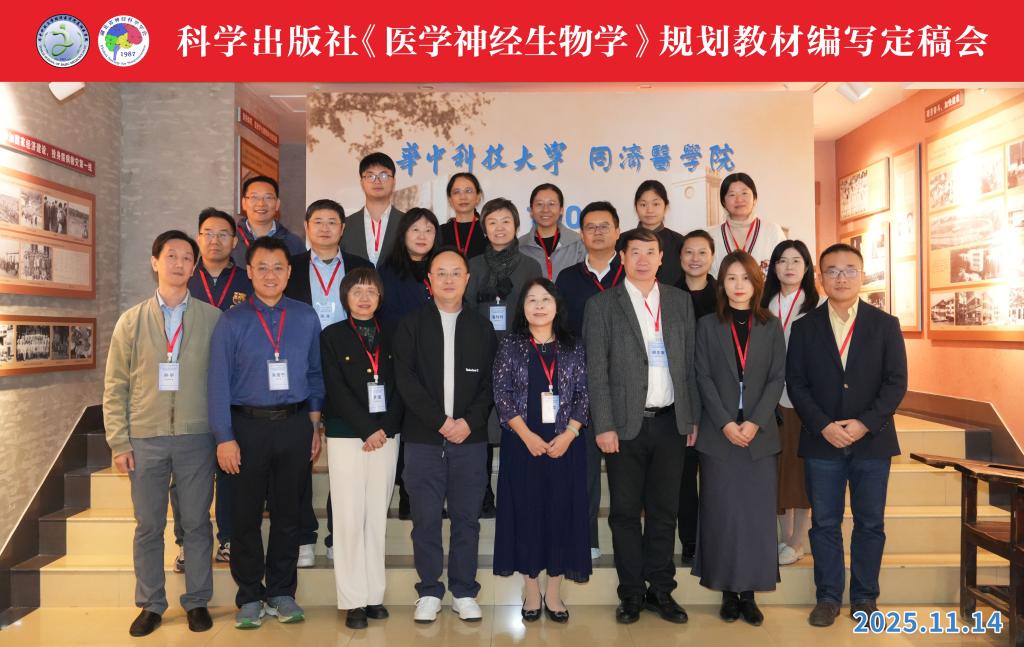 11月14日,由华中科技大学同济医学院基础医学院和湖北省神经科学学会联合主办,中国神经科学学会感觉和运动分会协办的科学出版社“十四五”普通高等教育研究生规划教材《医学神经生物学》编写定稿会在基础医学院410会议室成功举行。此次会议汇聚了来自全国十余所知名高校与科研院所的主编、副主编、编委及学科专家共计20余人,共同为这本旨在推动高层次医学人才培养、服务国家健康战略的教材贡献智慧与力量。
