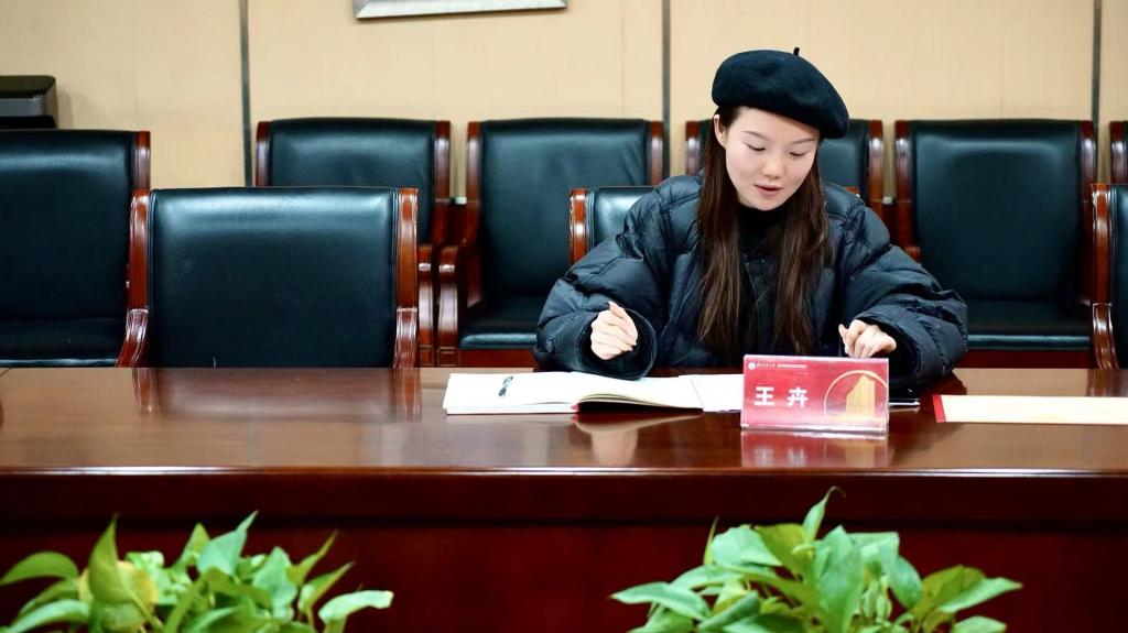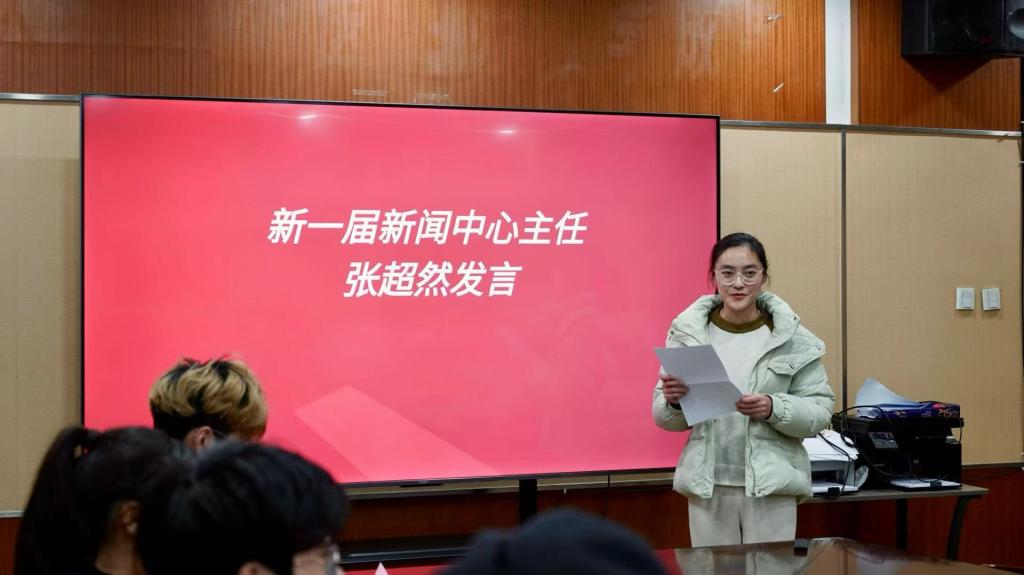 新一届新闻中心主任张超然同学随后发言。她结合个人经历和深刻体会,真诚地分享了自己对于学生工作的热爱和未来工作任务目标的规划,鼓励大家放下畏难情绪,勇于挑战自我,在工作中不断成长,砥砺前行。