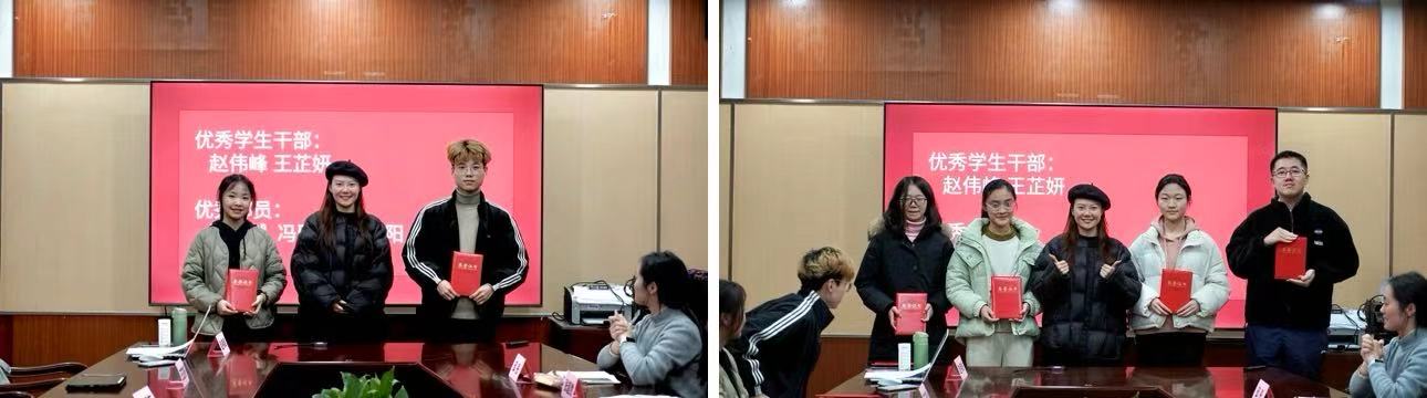 接下来,会议进入到表彰环节,王卉老师为获得相关荣誉的同学颁发证书并合影留念。这份荣誉不仅是对他们过去一年以实际行动诠释责任担当的充分肯定,更激励着全体成员在新一年以更高标准要求自己,在宣传实践中不断磨砺成长。