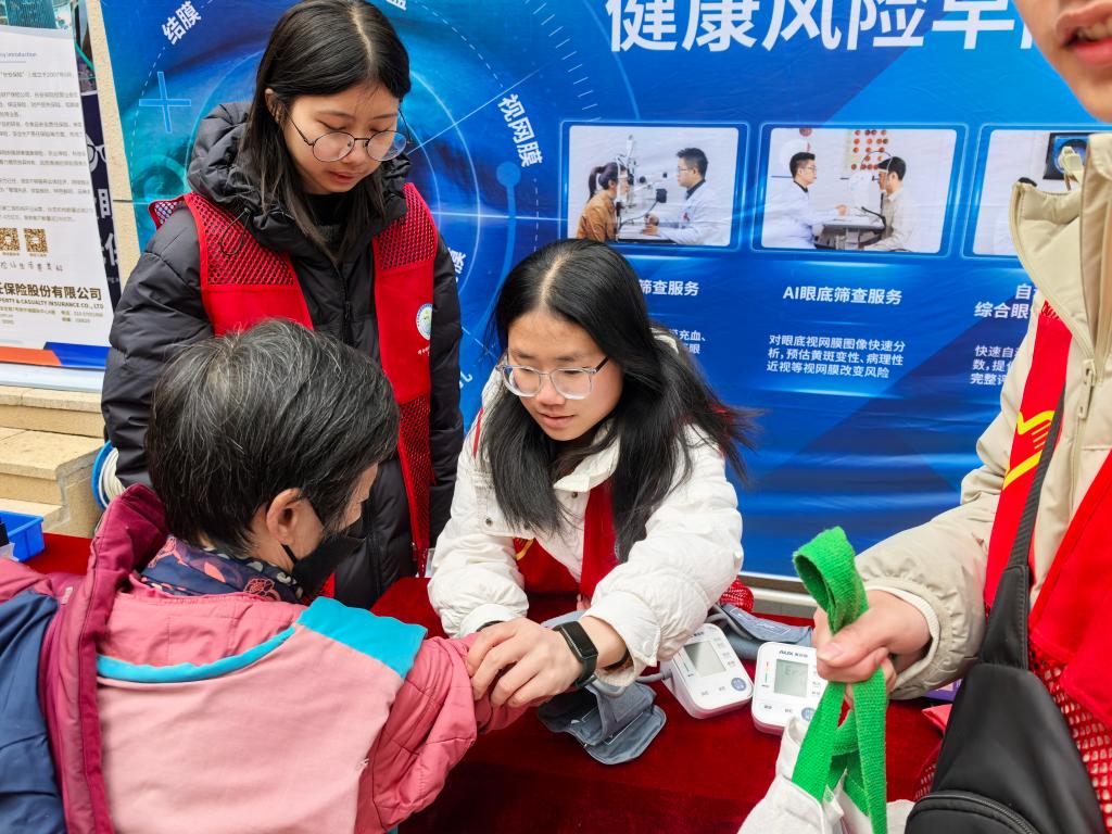 上午9时,葛洲坝·城市花园社区居民服务中心人头攒动。身着白大褂的医学生志愿者刚抵达现场,便迅速投入“健康小卫士培训营”工作。他们为社区老人测量血压,耐心分析数据,用通俗易懂的语言普及高血压防治知识。“奶奶,您平时要少盐少油,适当散步。”志愿者梅仁杰同学一边记录数据,一边轻声叮嘱。老人们眼角的笑纹里盛满信任,反复念叨的“记得按时吃药”化作掌心的温度,让志愿者们深刻感受到医患之间最质朴的情感纽带。