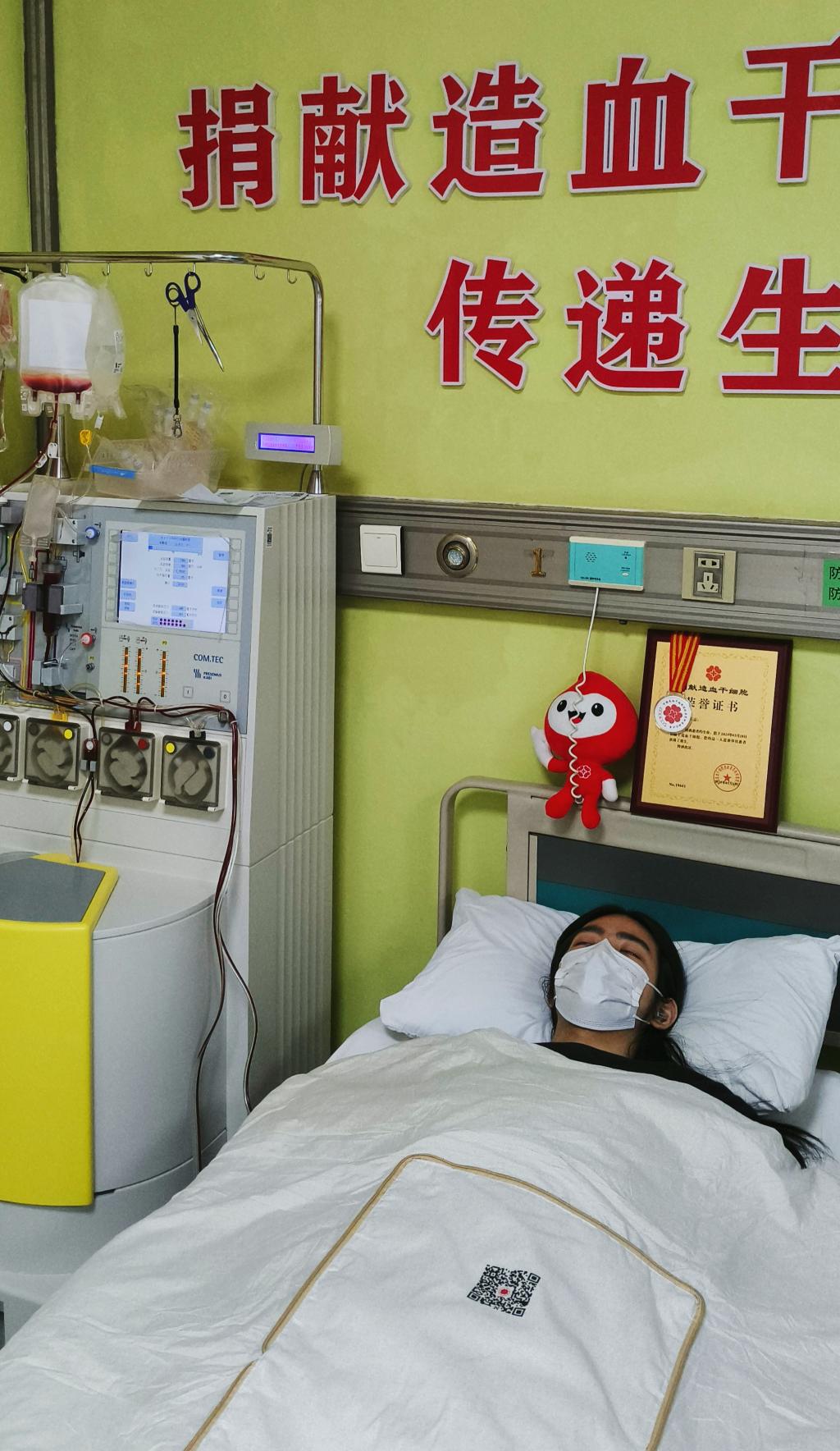 大一刚开始,作为青年志愿者协会一员的小万,在负责“有爱相髓”活动时签订了血样入库同意书,从此与中华骨髓库结缘。今年年初,当接到来自武汉市红十字会万分之一配型成功的通知时,这个总把“概率太小”挂在嘴边的理科生第一次相信了命运的必然。“能成为别人的‘唯一’,是医学生的荣幸。”面对父母对穿刺风险的担忧,他网查找了很多资料并耐心解释:相比之前捐献造血干细胞需要抽取骨髓,如今捐献造血干细胞,采用的是从外周血中采集造血干细胞的形式,这种捐献方式对身体没有危害,进而化解了父母疑虑;住院前夕,母亲默默将生活物资塞满他的行囊,父亲拍了拍他的肩膀:“儿子,去做你认为对的事吧,我们陪你。”