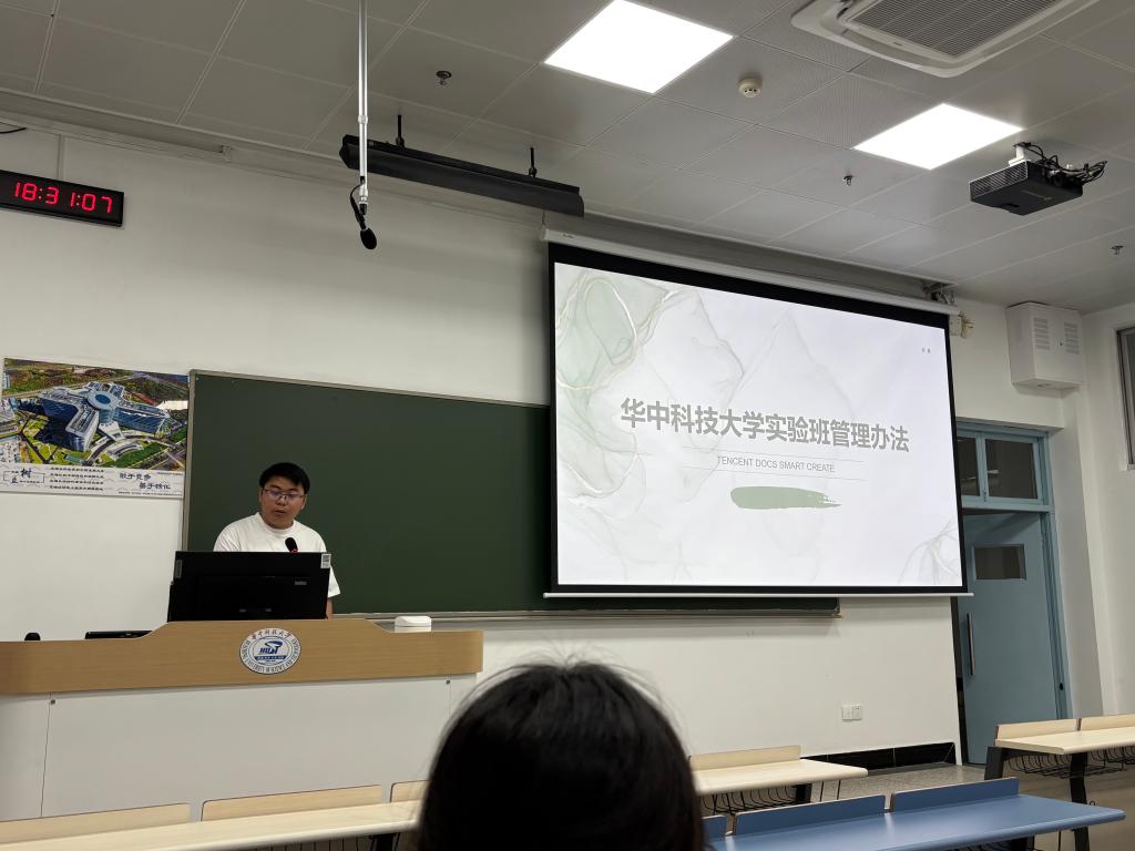 会议开始,辅导员李振振带领同学们一起学习了《华中科技大学实验班管理办法》,围绕动态考核机制、导师培养模式等特色培养方式进行了细致的解读,为实验班的同学们明确前进的方向,激发学习激情。