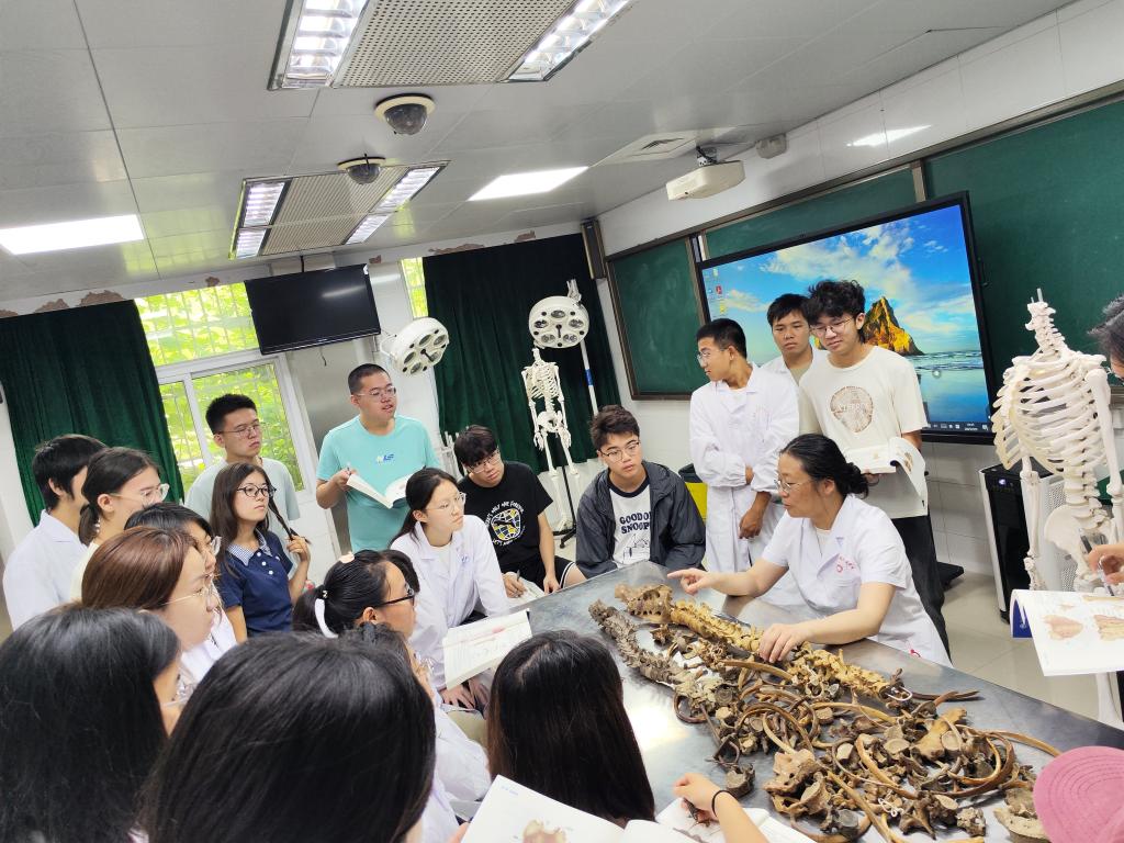 新学期伊始,系统解剖课程如约而至,为2024级临床相关专业的全体同学打开了探索人体奥秘的大门。解剖学实验室里,人体骨骼模型傲然挺立,各类解剖标本有序陈列。课程开始时,解剖学系的李忠玉老师、罗贤雯老师、刘安冬老师、景伟老师等为同学们讲述了解剖学发展的光辉历史。从古代医学家对人体结构的初步探索,到近现代一系列重大发现,一段段鲜活的故事让同学们深刻体会到解剖学作为医学基石的重要意义。随后,老师们以人体骨骼模型为教具,系统讲解了骨骼与关节的相关知识,并通过模型与标本的直观展示,使复杂抽象的概念变得通俗易懂。这堂课不仅让同学们掌握了基础知识,更让大家感受到医学的严谨与神圣。