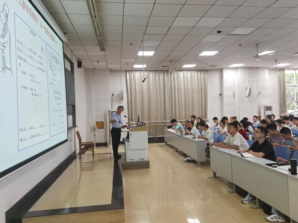 在二号教学楼15小教室,2023级基础医学和基础医学(强基)专业的48名同学在胡清华教授的带领下,开启了病理生理学领域的探索之旅。胡老师以渊博的学识和富有感染力的教学方式,从病理生理学的学科定位与发展历程切入,深入浅出地阐述了疾病发生发展的基本规律和机制。他通过临床典型案例与基础理论相结合的方式,生动讲解了绪论中的核心概念,引导同学们理解病理生理学在基础医学与临床医学之间的桥梁作用。胡老师在授课中特别强调“学科思维”和“临床问题导向”的学习方法,借助多媒体课件与板书相结合的形式,将抽象的理论知识具象化、系统化。课堂上,同学们踊跃发言、积极互动,表现出浓厚的兴趣与探索欲望。课程尾声,胡老师鼓励同学们注重思维训练,为未来的发展奠定坚实基础。