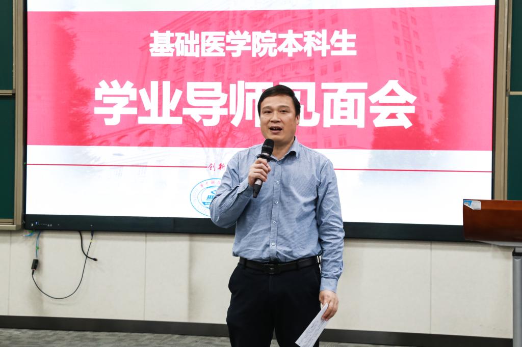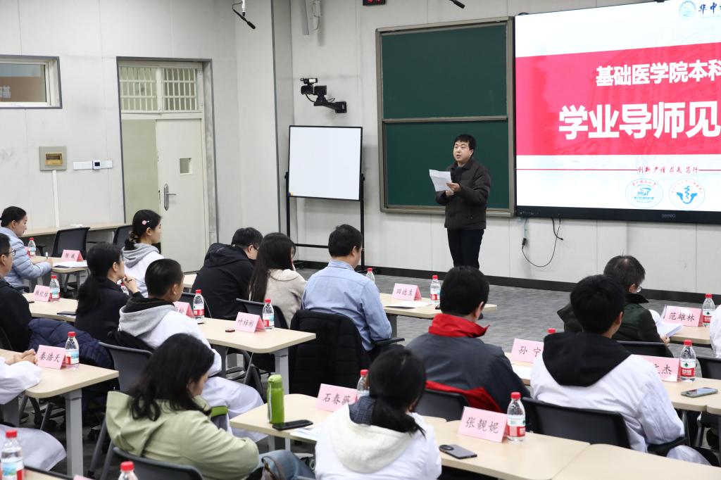 12月4日下午,基础医学院在二号教学楼八大教室,举行2025级基础医学专业五年制及强基班学生学业导师见面会。党委副书记田德生致欢迎辞,副院长王芳做总结发言,副院长王维民等48位本科生学业导师,教学办公室、学生办公室全体老师参加此次活动。
