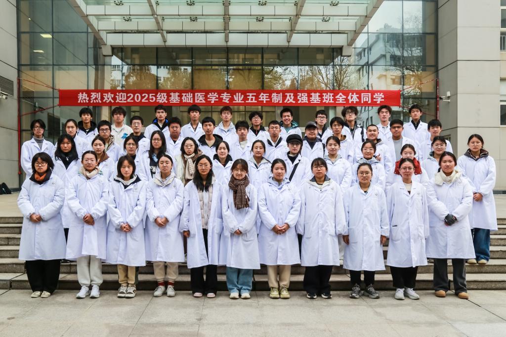 党委副书记田德生代表学院热烈欢迎2025级基础医学专业新生们,希望同学们在学业导师的帮助下深化专业认知、在未来求学路上始终不忘初心,将个人发展融入到国家发展之中,为基础医学研究添砖加瓦,助力健康中国建设。