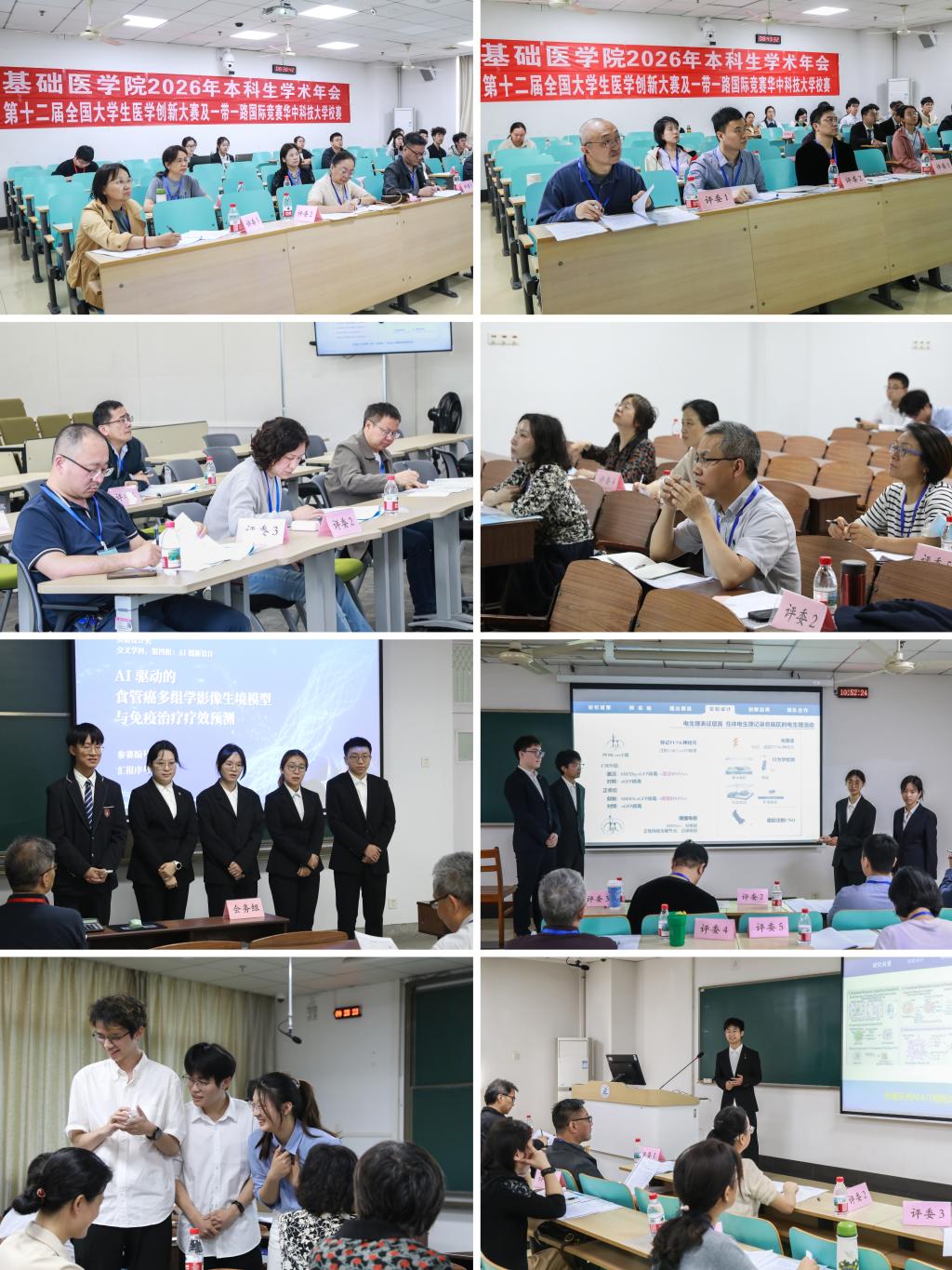 本次年会暨校赛由基础医学院和基础医学国家级实验教学示范中心主办,设立了预赛和决赛两阶段,涵盖基础临床、药学中医药学、交叉学科、“一带一路”国际竞赛4个赛道。与2025年相比,赛事影响力持续扩大:报名项目从125项增至143项,参赛本科生从464人增至524人(含24名国际学生),指导老师从116人、154人次增至138人、185人次。学生覆盖从2021级至2025级五个年级,专业背景更为多元,覆盖临床医学、基础医学、预防医学、药学等13个医科专业,并拓展至电子信息工程、机械类、数学、软件工程等领域,共计18个专业,实现医工、医理、医文交叉。指导老师涵盖基础、临床、公卫、药学院,以及电子信息、计算机学院等9个院系,形成了跨学科协同育人的强大合力。
