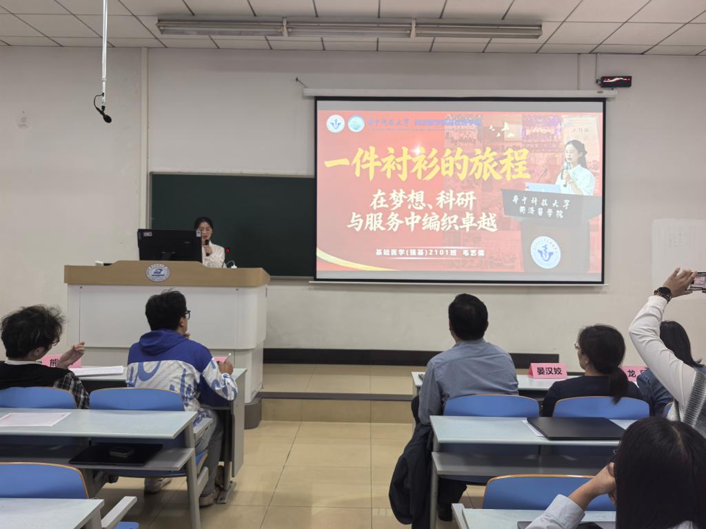 毛艺儒学姐从自己身上的旧衬衫说起,这件衬衫陪伴了她大学的五年。由于自身心怀学医救世的梦想,她坚定地选择了基础医学强基专业,深耕学业,勤勉自律,取得了优异的成绩。科研方面,她加入朱铃强老师的实验室,两年来潜心于脑科学课题。党旗领航,使命在肩,在学习之余,学姐也积极参与社会实践,组织党团活动,并注重发展自身兴趣,精通多种乐器,在学院春华秋实晚会上绽放光彩。